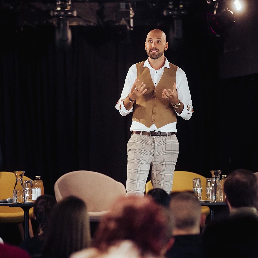 Pred tabo so nasveti, s katerimi boš dosegel/a samozavesten javni nastop. To je lahko javna predstavitev, vodenje dogodka ali pogum za snemanje video vsebin. V vsakem primeru: nastop boš obvladal/a.